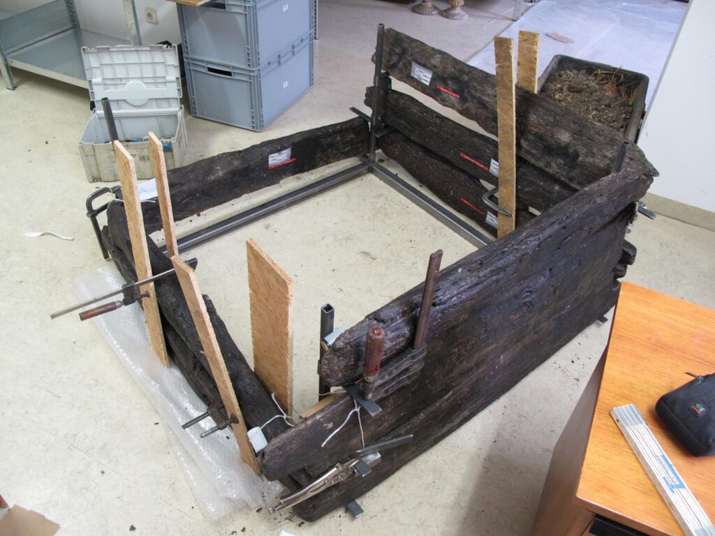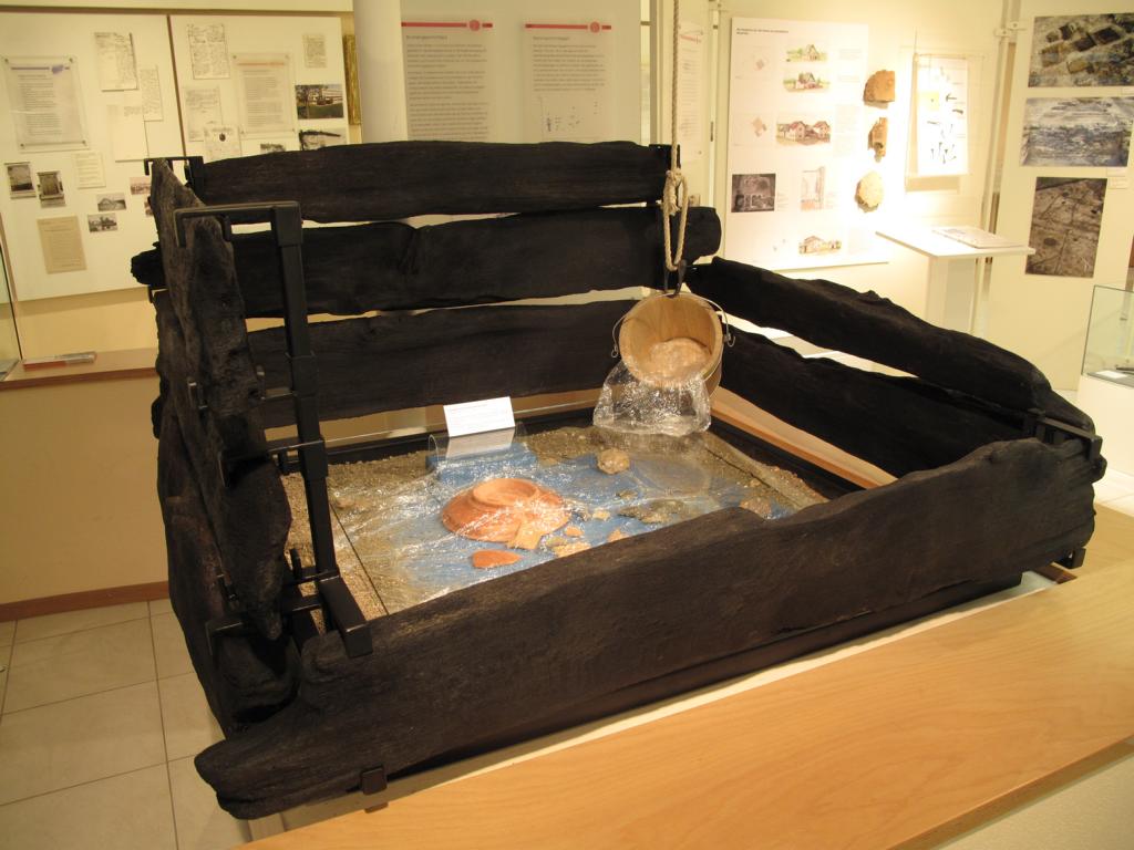 Ein Freund von mir hatte, nahe Heimstetten, bei Ausgrabungen, Bretter und Artefakte eines römischen Brunnens gefunden, die zur Ausstellung im Museum Aschheim auf Paletten bereitlagen.